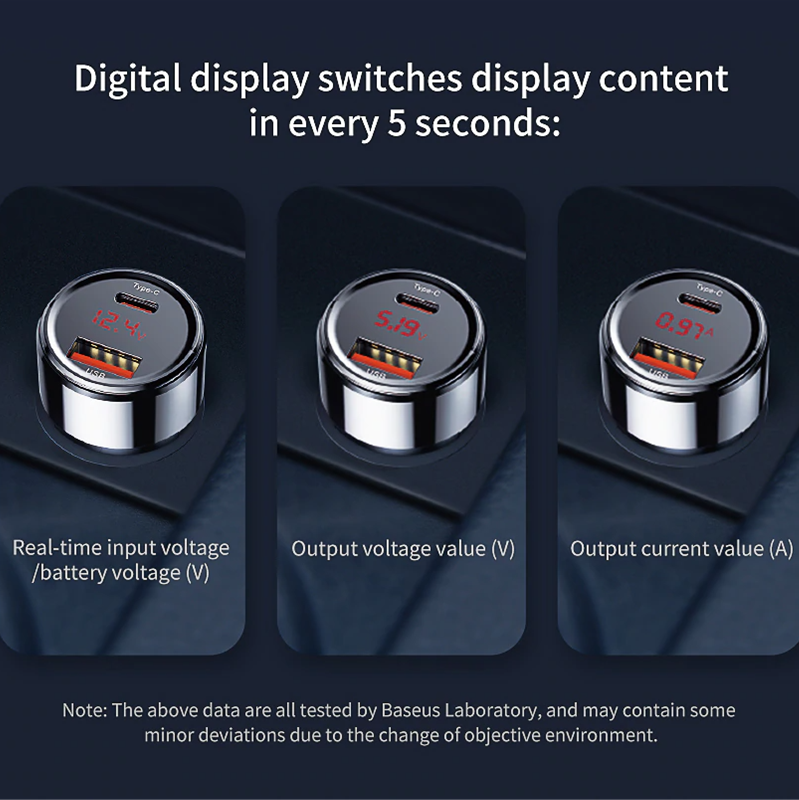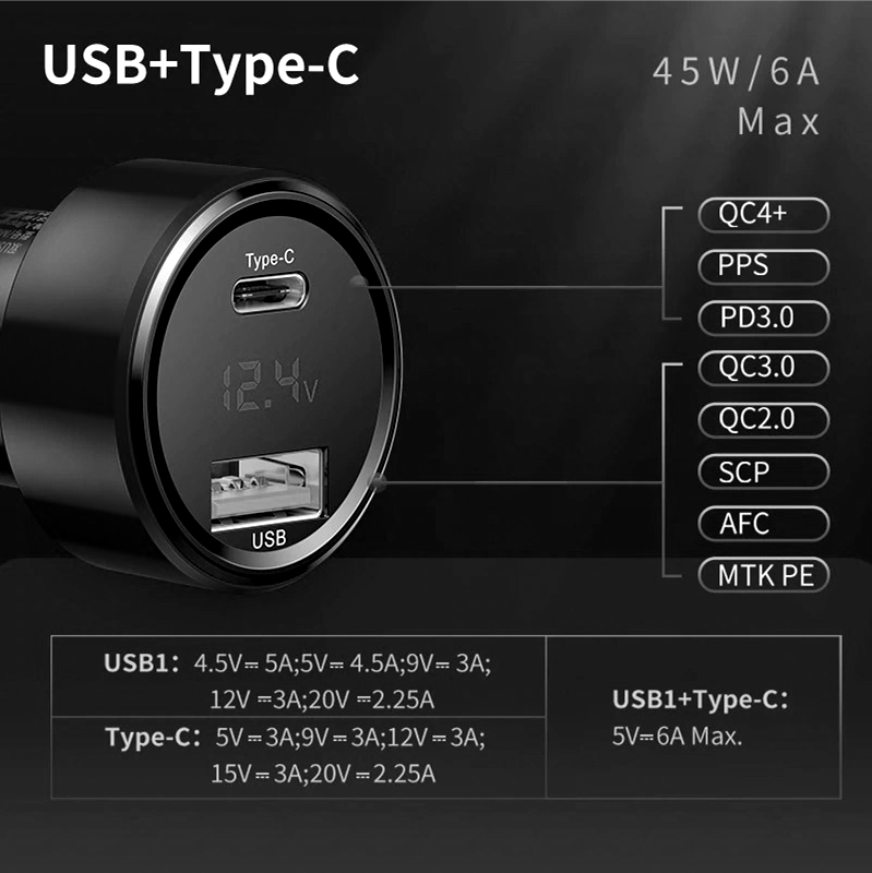 Baseus 45W 6A USB-C Super Fast Charging Car Charger for Samsung Galaxy S22 / iPhone 13 Pro