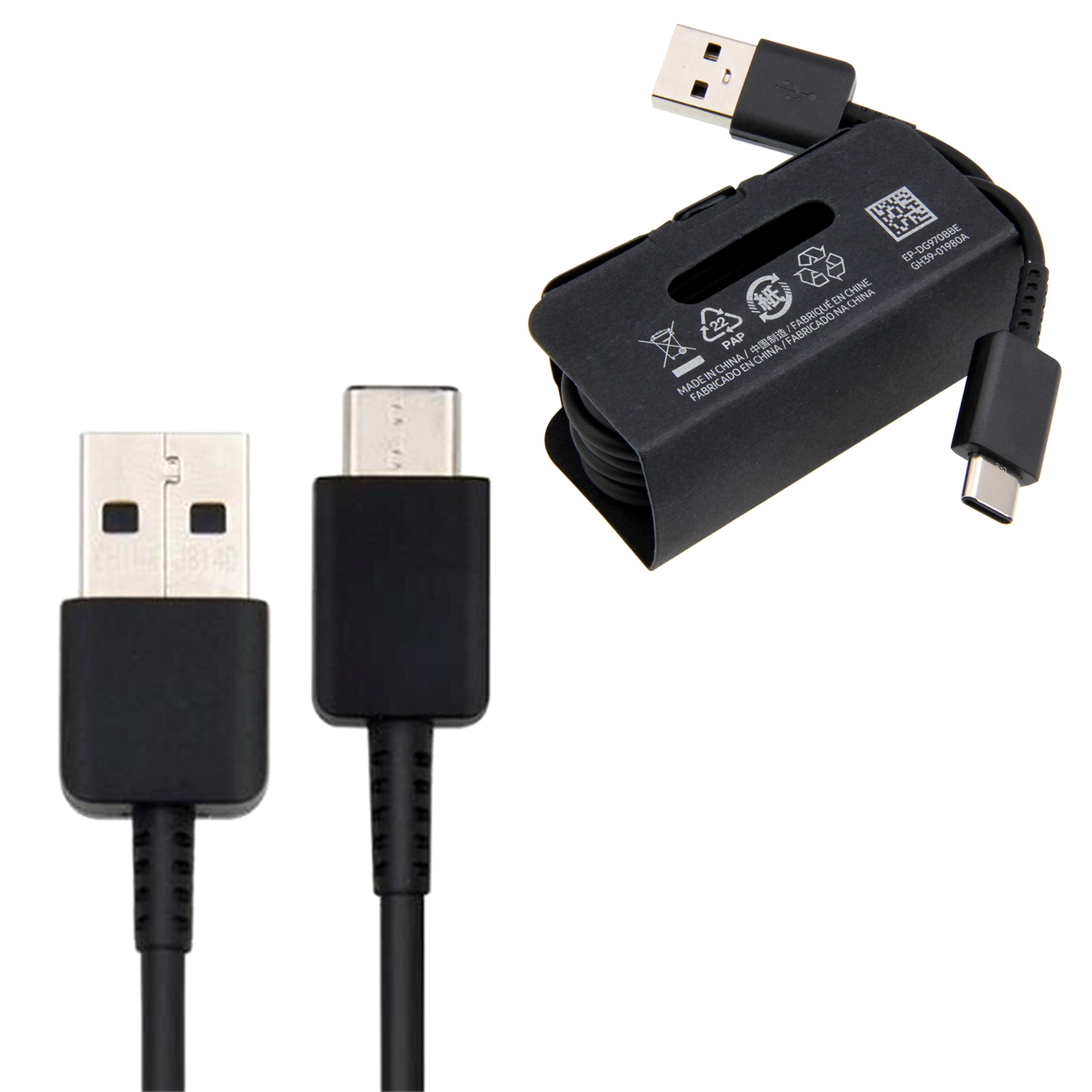 The Samsung EP-DG970BBE USB A to USB Type C Charging and Data Sync Cable. This cable is purpose built for the Samsung galaxy S10 range. It is built of high-quality material and has a matt textured finish.